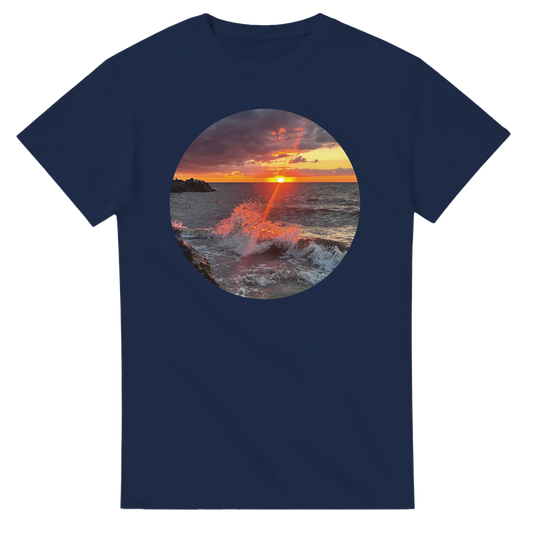 Heavyweight Cotton Unisex Crewneck T-shirt • "Fiery Splash at Avon Lake" Photo on Front • 10 color fabric choices