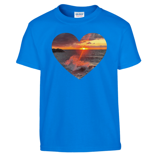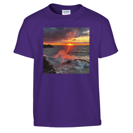 Classic Kids Crewneck T-shirt • "Fiery Splash at Avon Lake" • 6 dark color fabrics • 4 photo styles