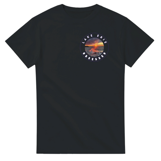 Heavyweight Cotton Unisex Crewneck T-shirt • "Fiery Splash at Avon Lake" Photo on Front & Sleeve • 10 color fabric choices