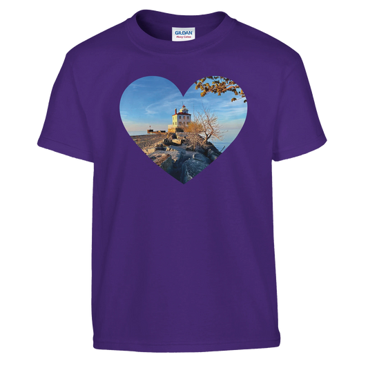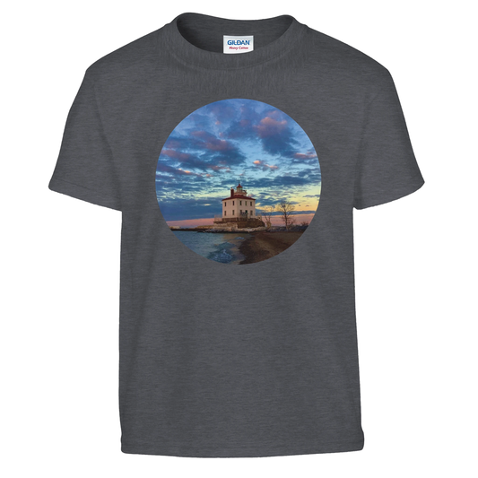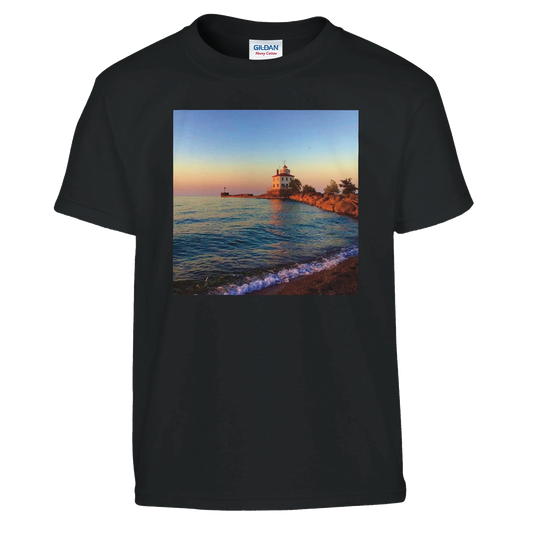 Classic Kids Crewneck T-shirt • "Fairport Harbor West Breakwater Light" • 6 dark color fabrics • 4 photo styles