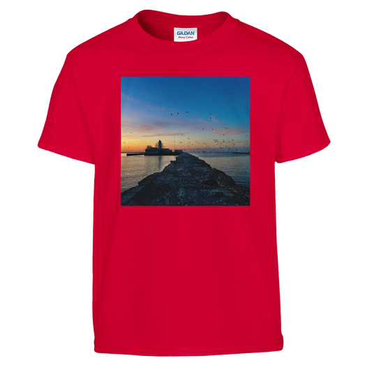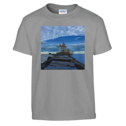 Classic Kids Crewneck T-shirt • "Breakwater Lighthouse" • 6 dark color fabrics • 4 photo styles
