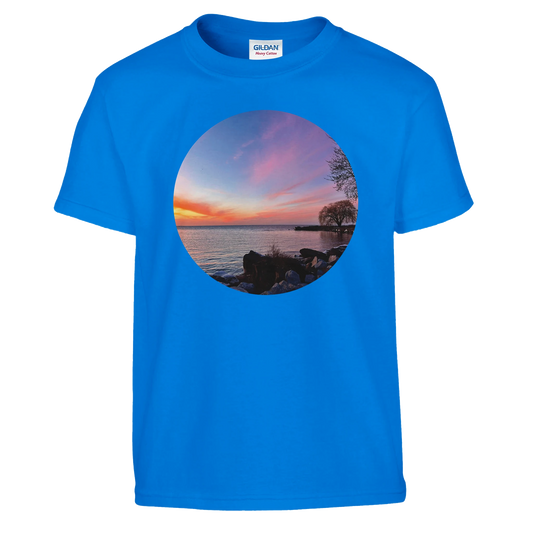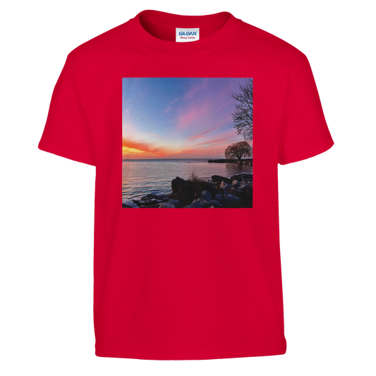 Classic Kids Crewneck T-shirt • "Fiery Splash at Avon Lake" • 6 light color fabrics • 4 photo styles