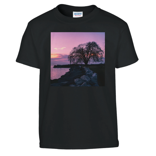 Classic Kids Crewneck T-shirt • "Fiery Splash at Avon Lake" • 6 dark color fabrics • 4 photo styles