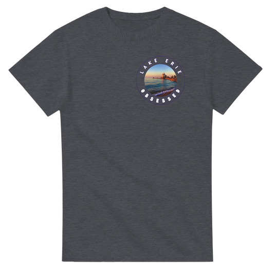 Heavyweight Cotton Unisex Crewneck T-shirt • "Lighthouse Glow" Photo on Front & Sleeve • 10 color fabric choices