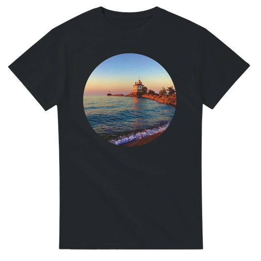 Heavyweight Cotton Unisex Crewneck T-shirt • "Lighthouse Glow" Photo on Front • 10 color fabric choices
