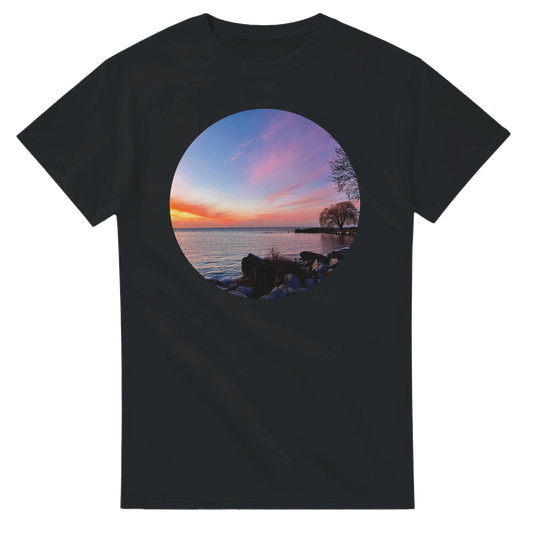 Heavyweight Cotton Unisex Crewneck T-shirt • "Sunset Orange" Photo on Front & Sleeve • 10 color fabric choices