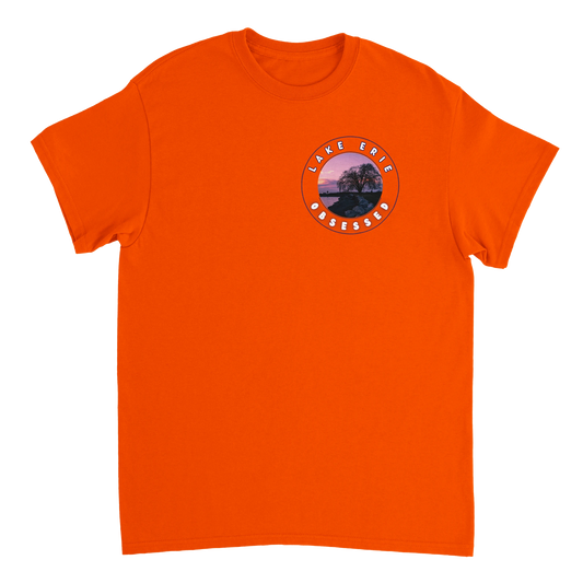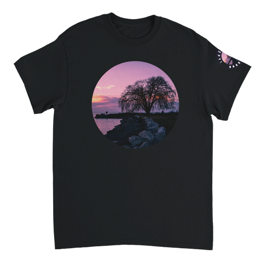 Heavyweight Cotton Unisex Crewneck T-shirt • "Willow at Edgewater" Photo on Front & Sleeve • 10 color fabric choices